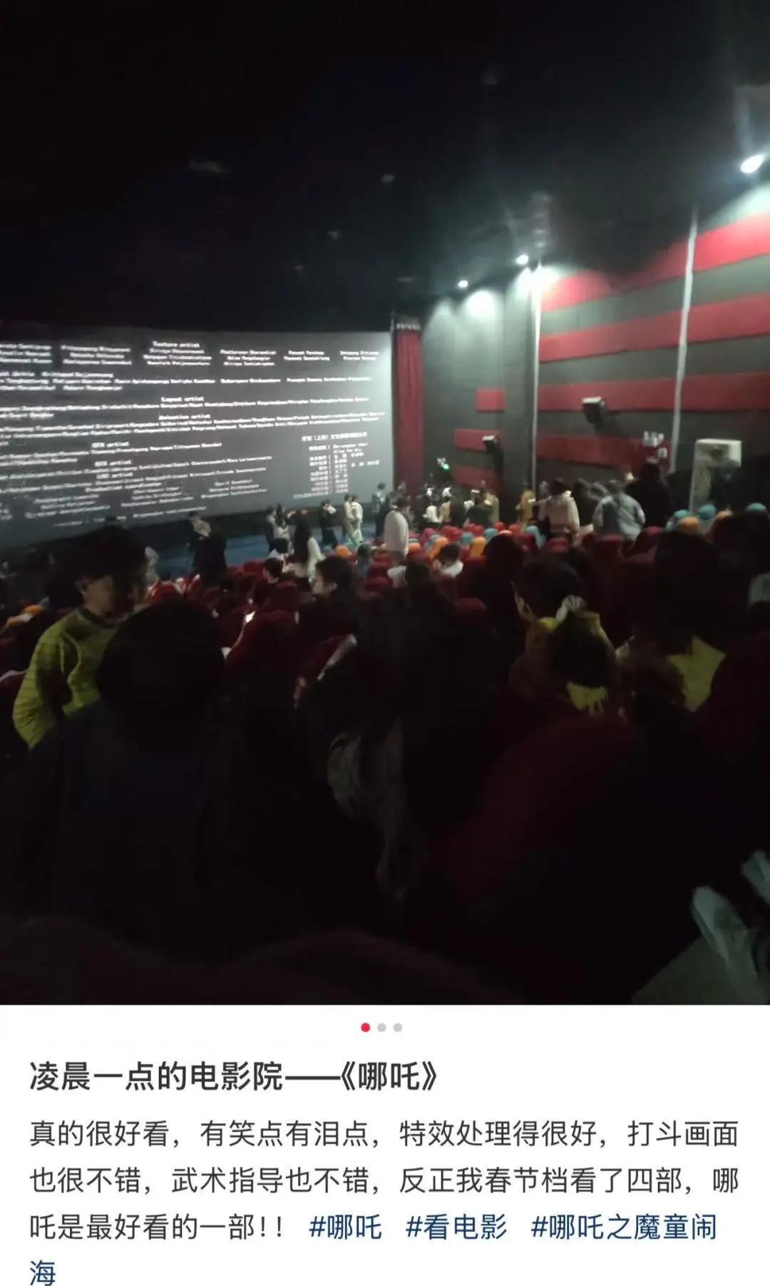 社交媒体上,不少网友晒出观影情况,有影院凌晨一点仍然挤满了看《哪吒2》的人。